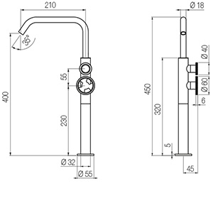 | RUBINETTO LAVABO RIALZATO SENZA SALTERELLO E SCARICO CROMO |